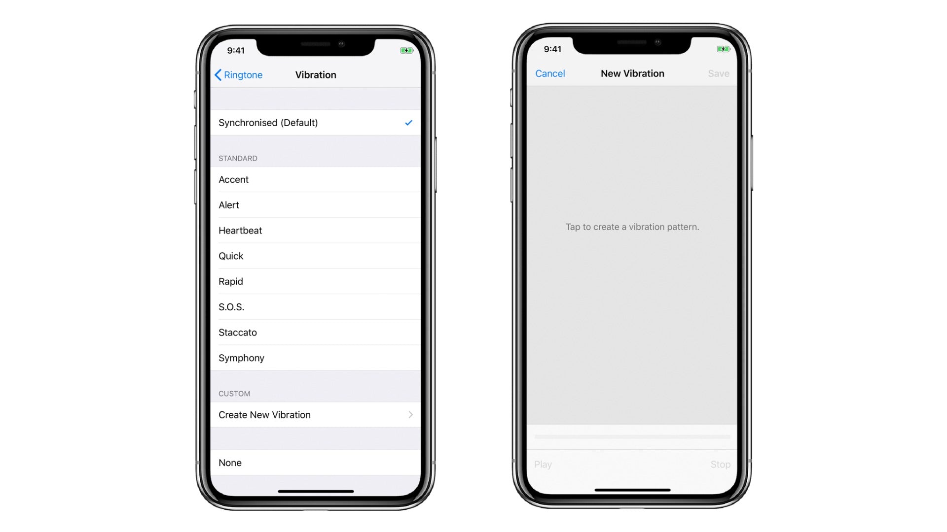 Poate că nu ai găsit un tipar care îți place sau pe care să îl consideri destul de distinctiv. Nu-ți face griji, iOS îți oferă posibilitatea de a-ți crea propriile vibrații personalizate. Dacă vrei să-ți lași creativitatea să zboare, urmează pașii de mai sus pentru personalizarea tiparului de vibrații, dar în loc să alegi una dintre opțiunile prestabilite: