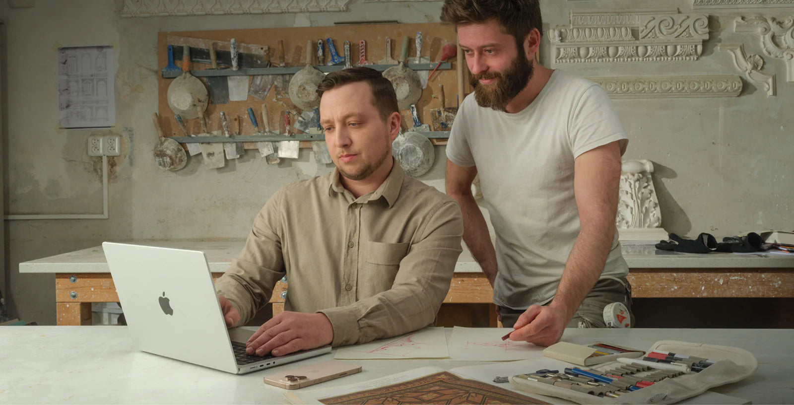 Pentru Oliver, comunicarea eficientă este esențială în activitatea de zi cu zi. Folosește din plin funcțiile iPhone-ului 16 Pro. „Lucrez constant cu o mulțime de detalii, iar reacțiile rapide sunt cruciale. iPhone-ul este un instrument de neînlocuit pentru comunicare instantă și documentare direct pe teren”, spune el. Datorită camerei foto performante, poate surprinde fiecare etapă a procesului de restaurare chiar pe șantier – un lucru esențial pentru analiza ulterioară și documentarea minuțioasă a lucrărilor.