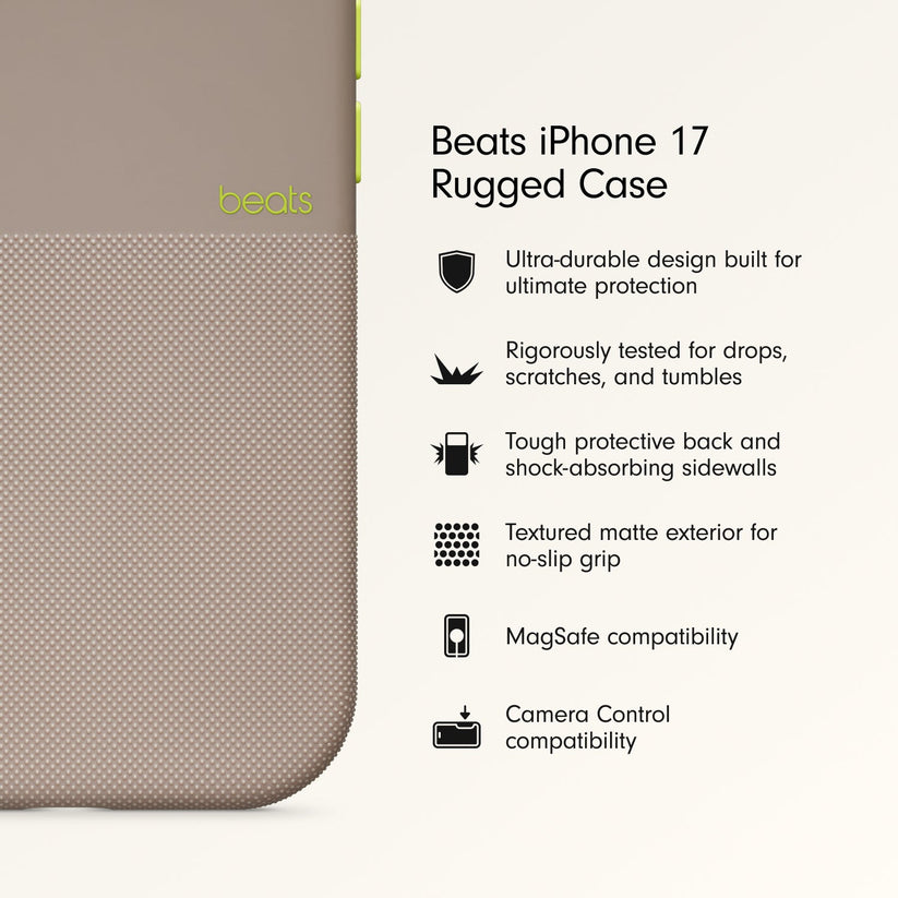 Carcasa robustă Beats pentru iPhone 17 este compatibilă cu MagSafe, având magneți încorporați care se aliniază perfect pentru o experiență de atașare ușoară și o încărcare wireless eficientă.