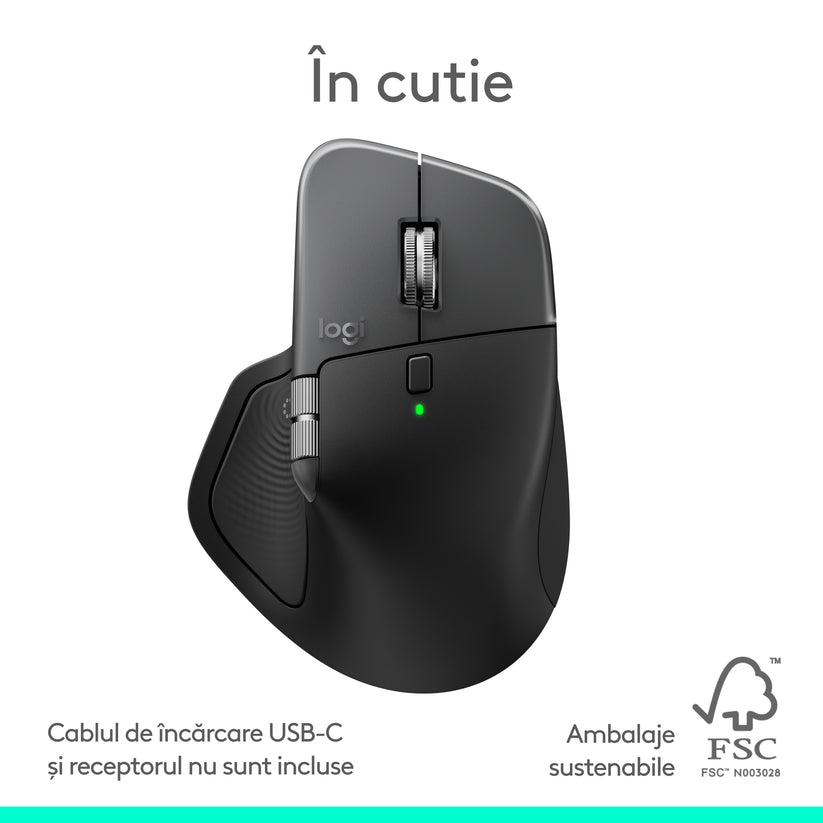 Mouse ergonomic conceput pentru confort, MX Master 4 te menține în flux cu o înclinare naturală, butoane intuitive și o rotiță laterală pentru degetul mare, care reduce stresul asupra mâinii pentru o navigare fluidă.